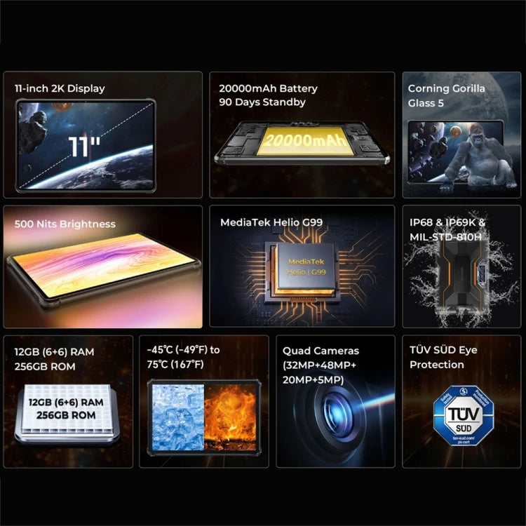 Factory Price OUKITEL RT8 4G Network IP68/IP69K Rugged Tablet, 6GB+256GB, 11 inch Android 13