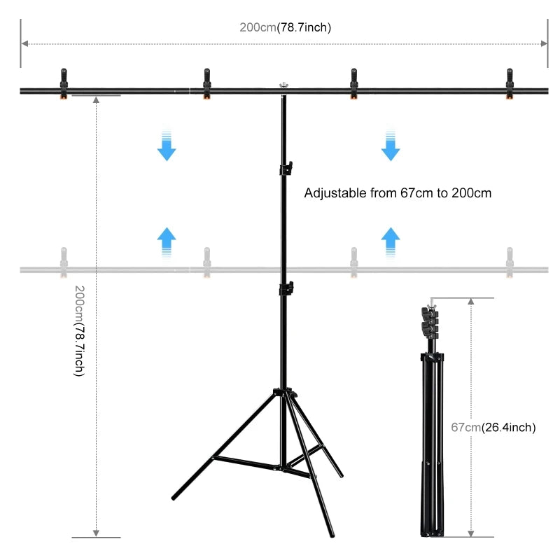 5. The height of the background frame (67-200cm) can be adjusted by adjusting the tripod.