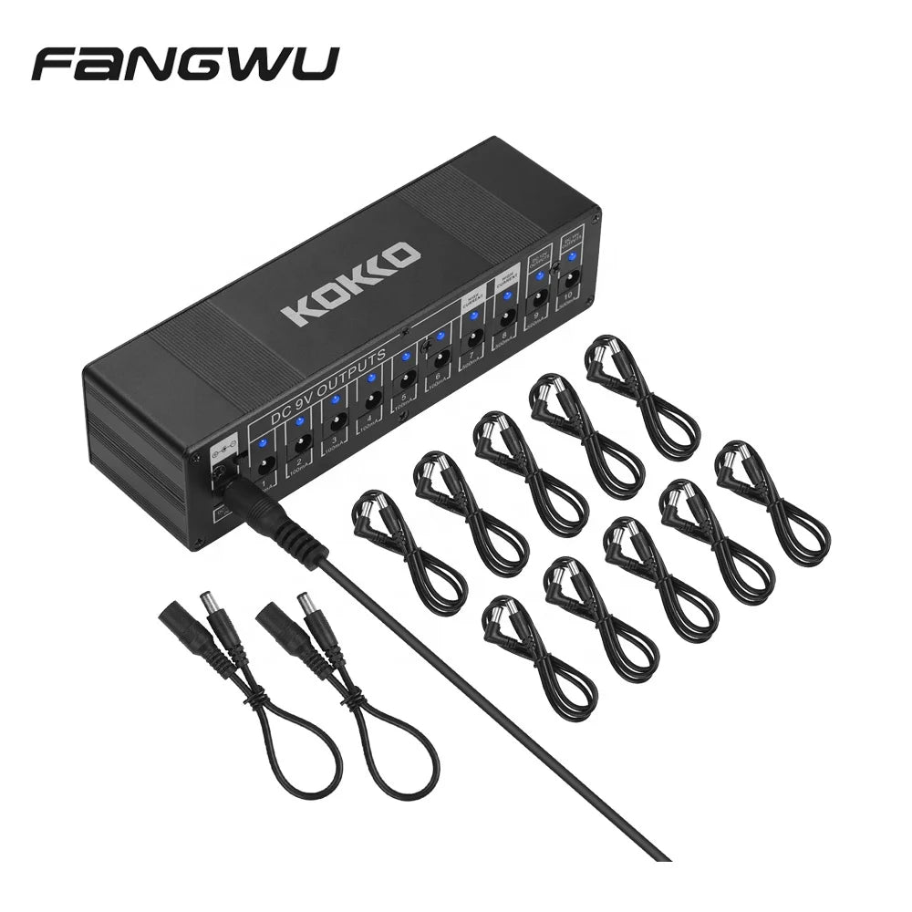 Power supply 10 isolated DC outputs for 9V/12V/18V guitar effects, compact size and metal shell design, portable and durable.