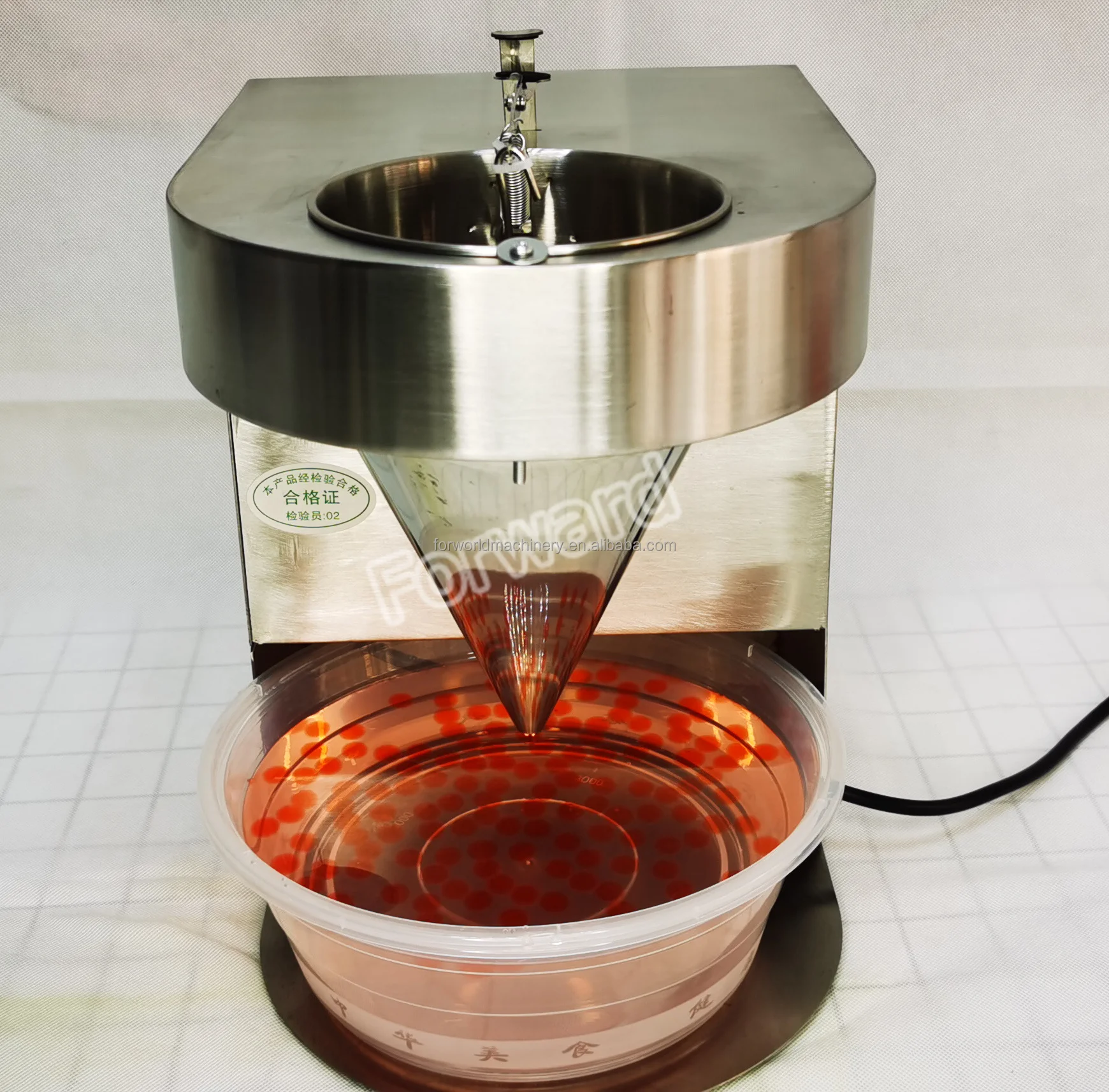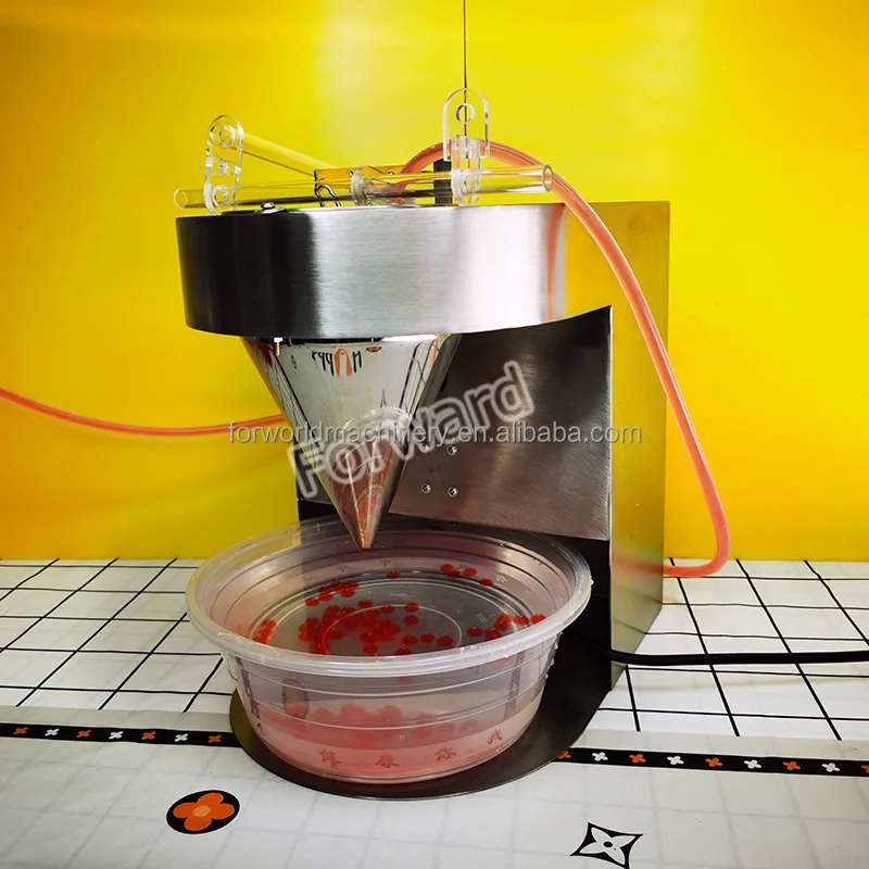 The boba popping machine is used to make various flavors of popping boba, suitable for all kinds of beverages, like fresh juice, concentrated juice and so on. Popping boba can be used in bubble tea, ice cream, cake decoration and egg tart filling, and etc. It is new developed and healthy products, which can be use in many food products.