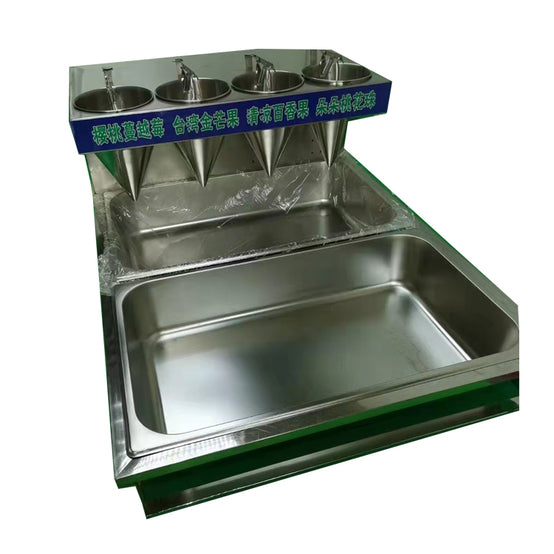 2: Six kilograms of pure water is added to the material at a rate of 3%: the pure fruit powder is stirred and poured into the first rectangular stainless steel water tank of the machine. Pour six kilograms of purified water into the second rectangular sink of the machine.