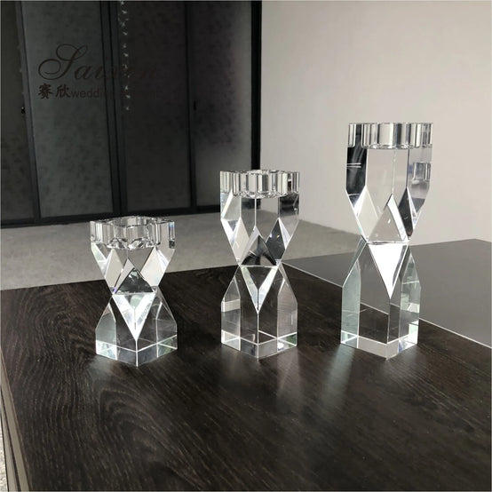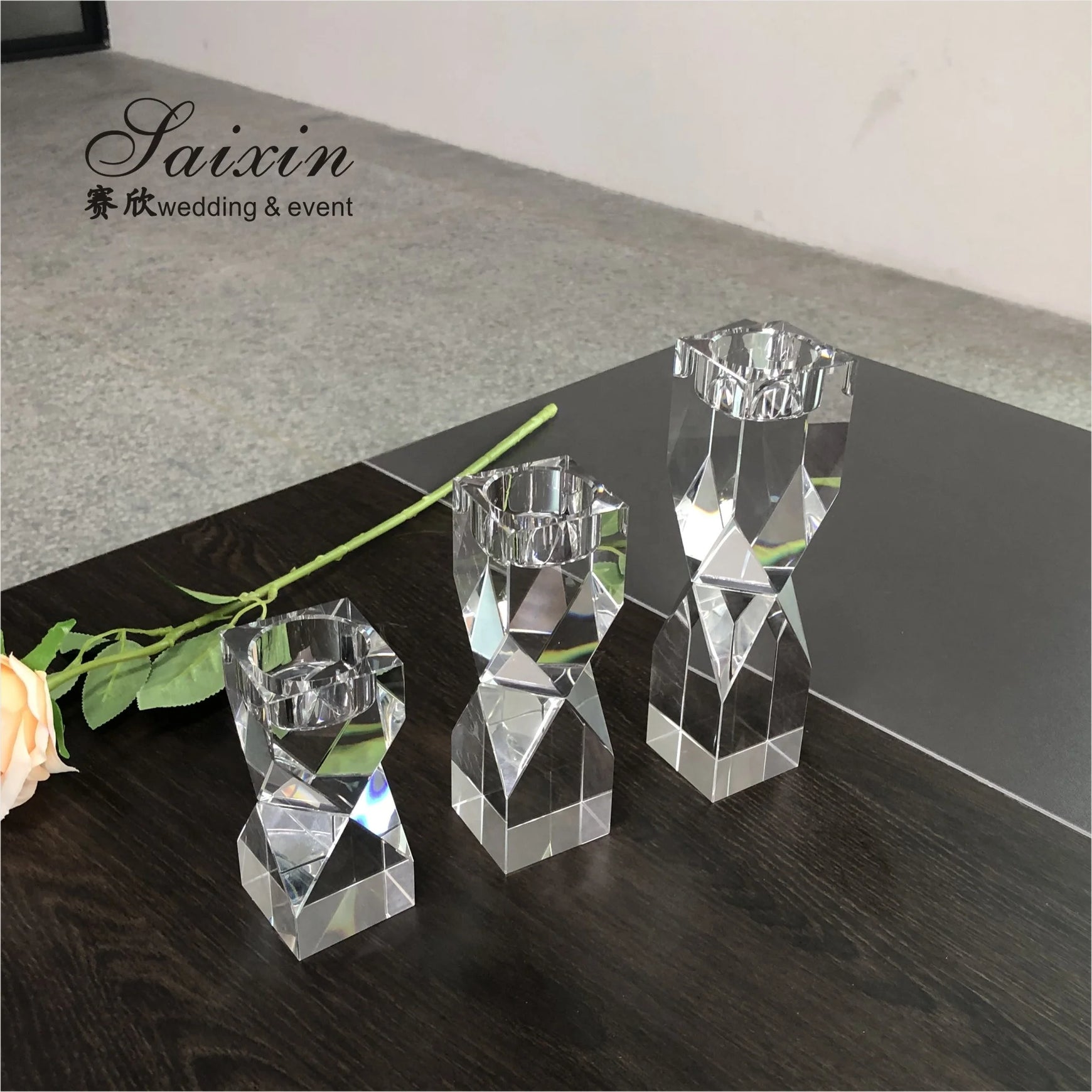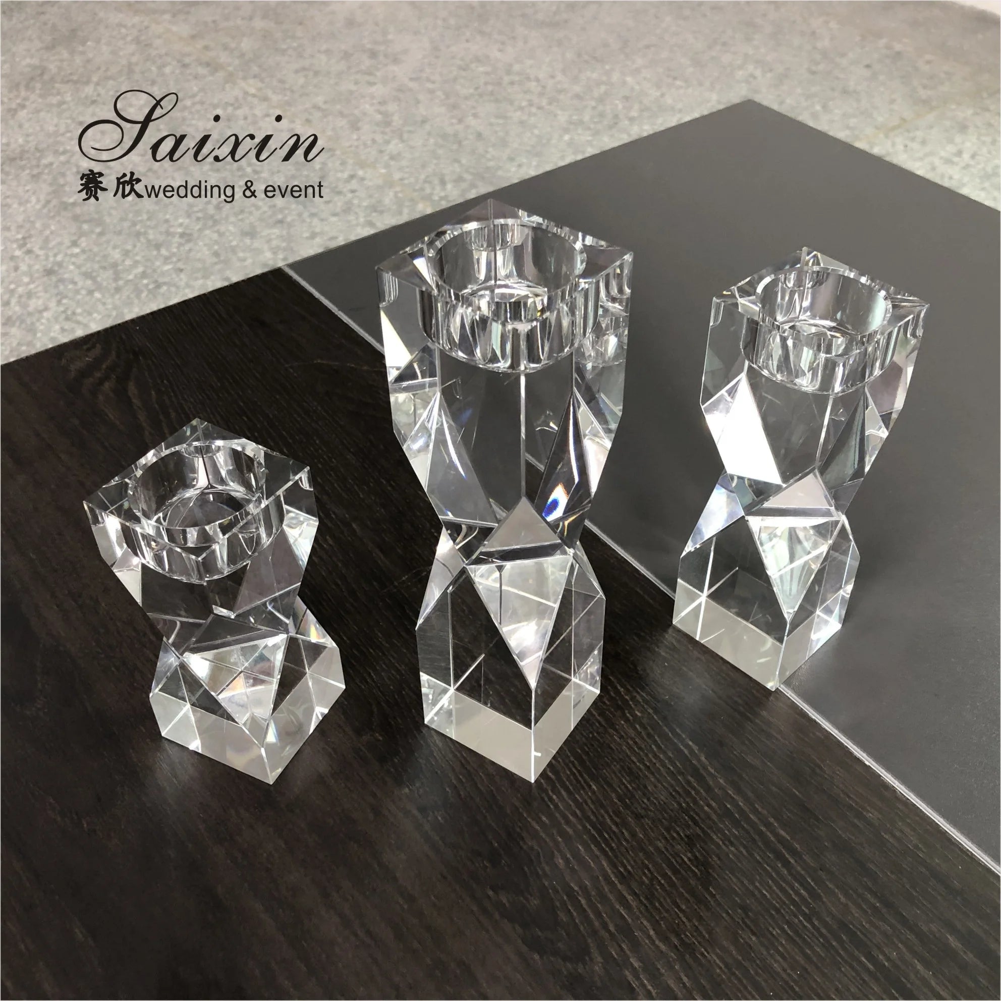 Factory wholesale 3 pcs set clear crystal Brilliant cut votive tealight candle holder for wedding decoration
