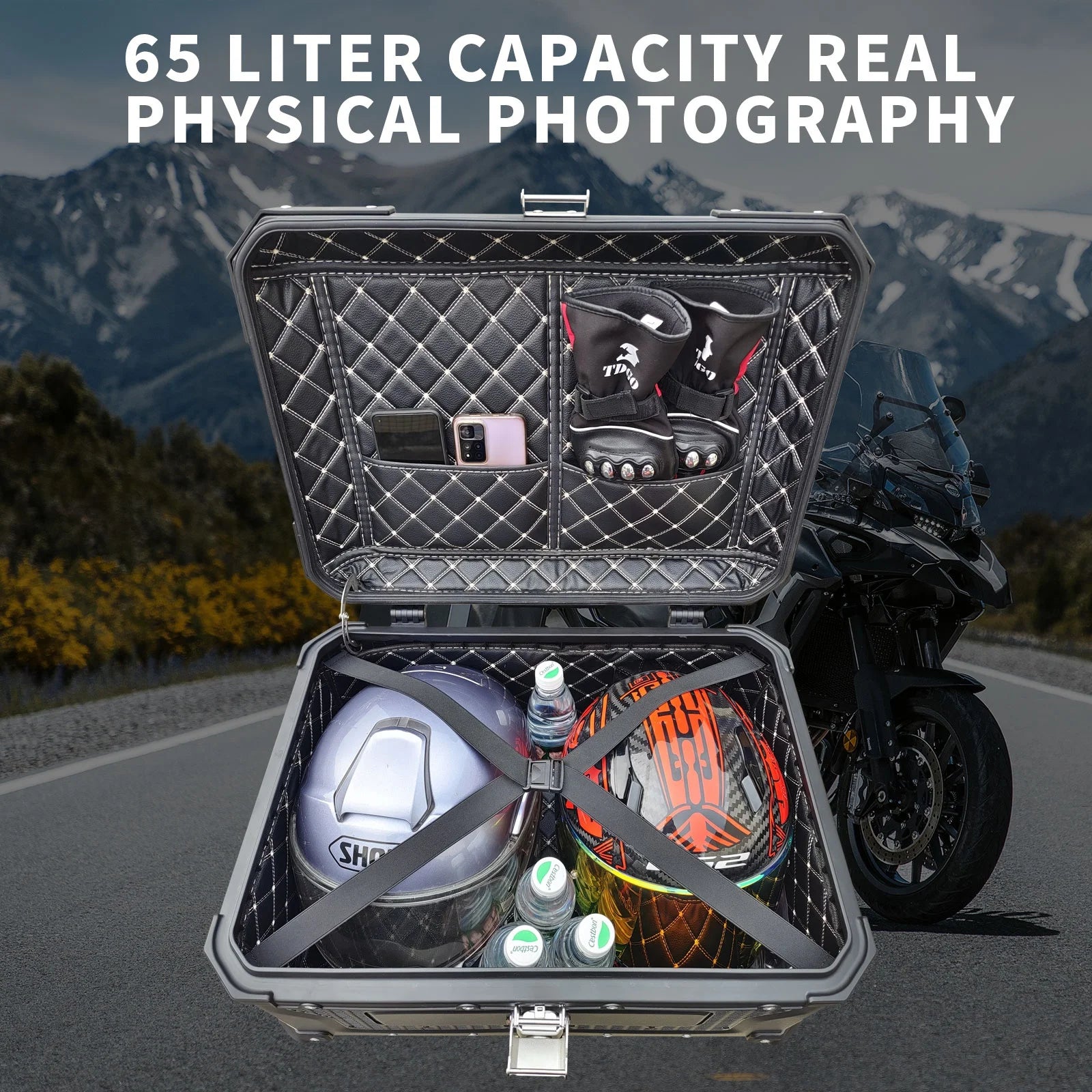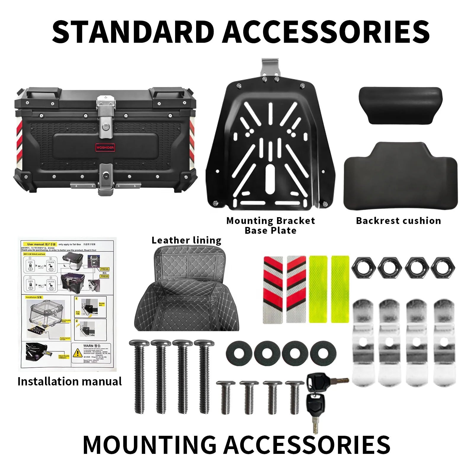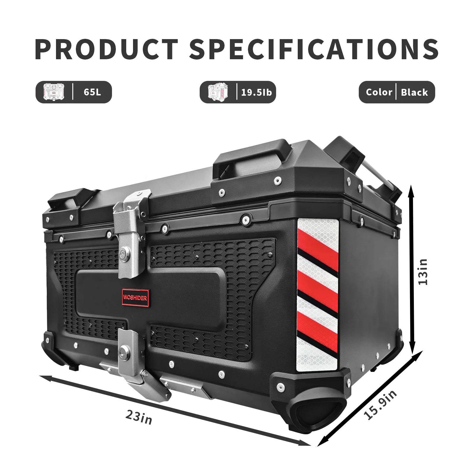 Factory's new WOSHIDER brand series 65L top motorcycle universal high quality alloy case motorcycle tail box Black