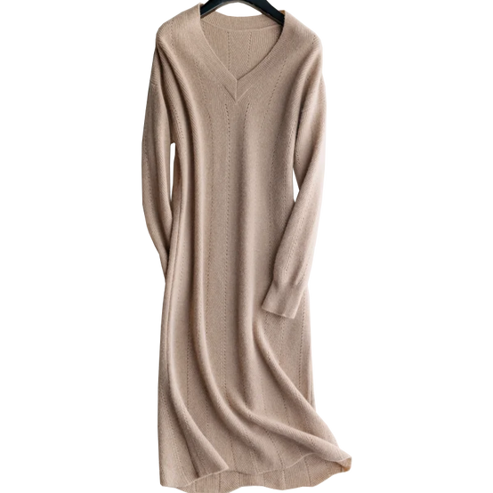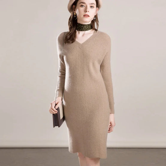 V Neck Cashmere Sweater Dress for Women