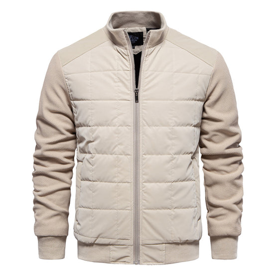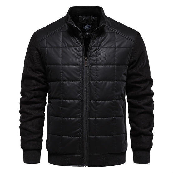 Fashion Stitching Coat Winter Personality Stand Collar Zipper Jacket Men's Clothing
