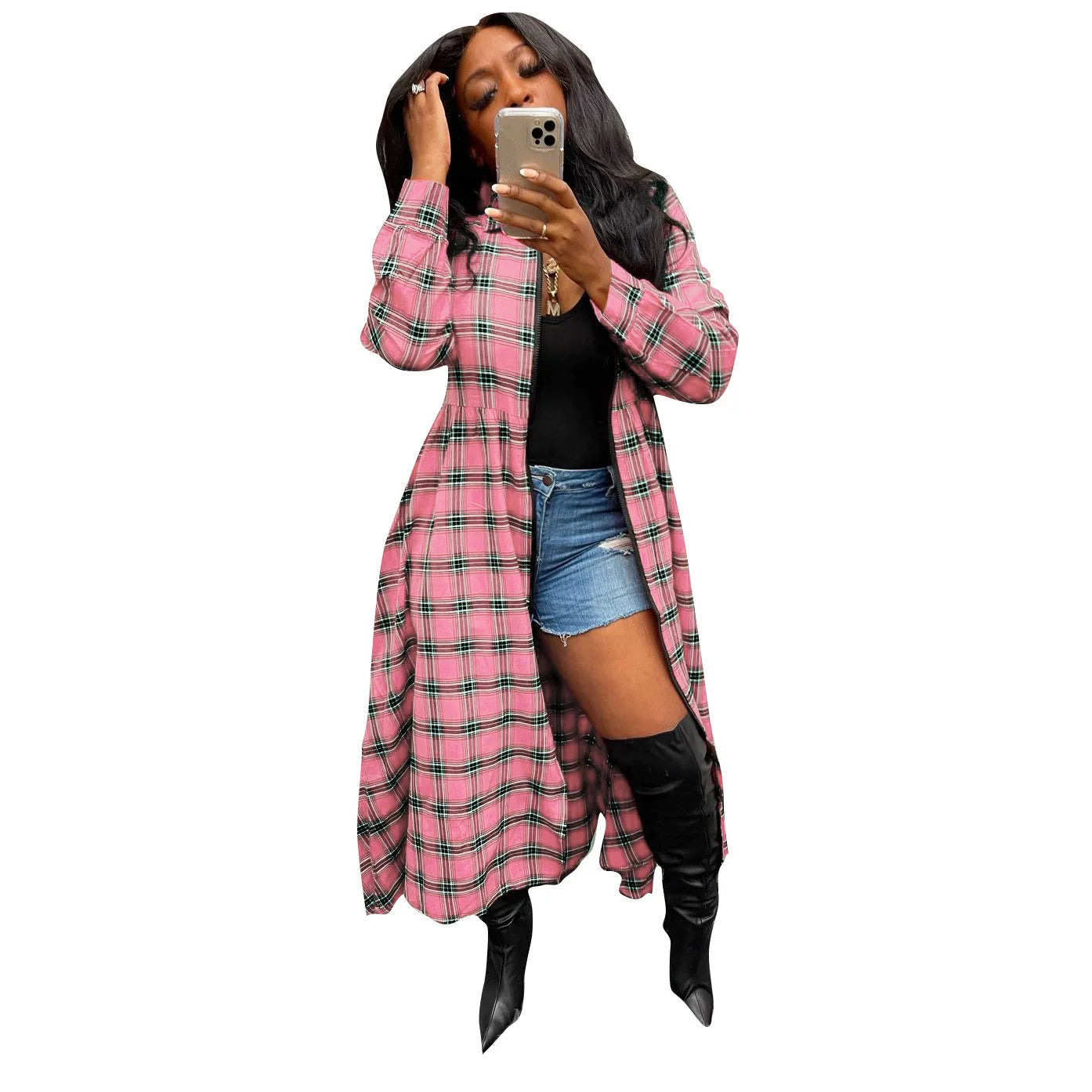 Fashionable Street Wear Loose Long Plaid Coats long jacket women fall clothes long coat for women plaid jacket