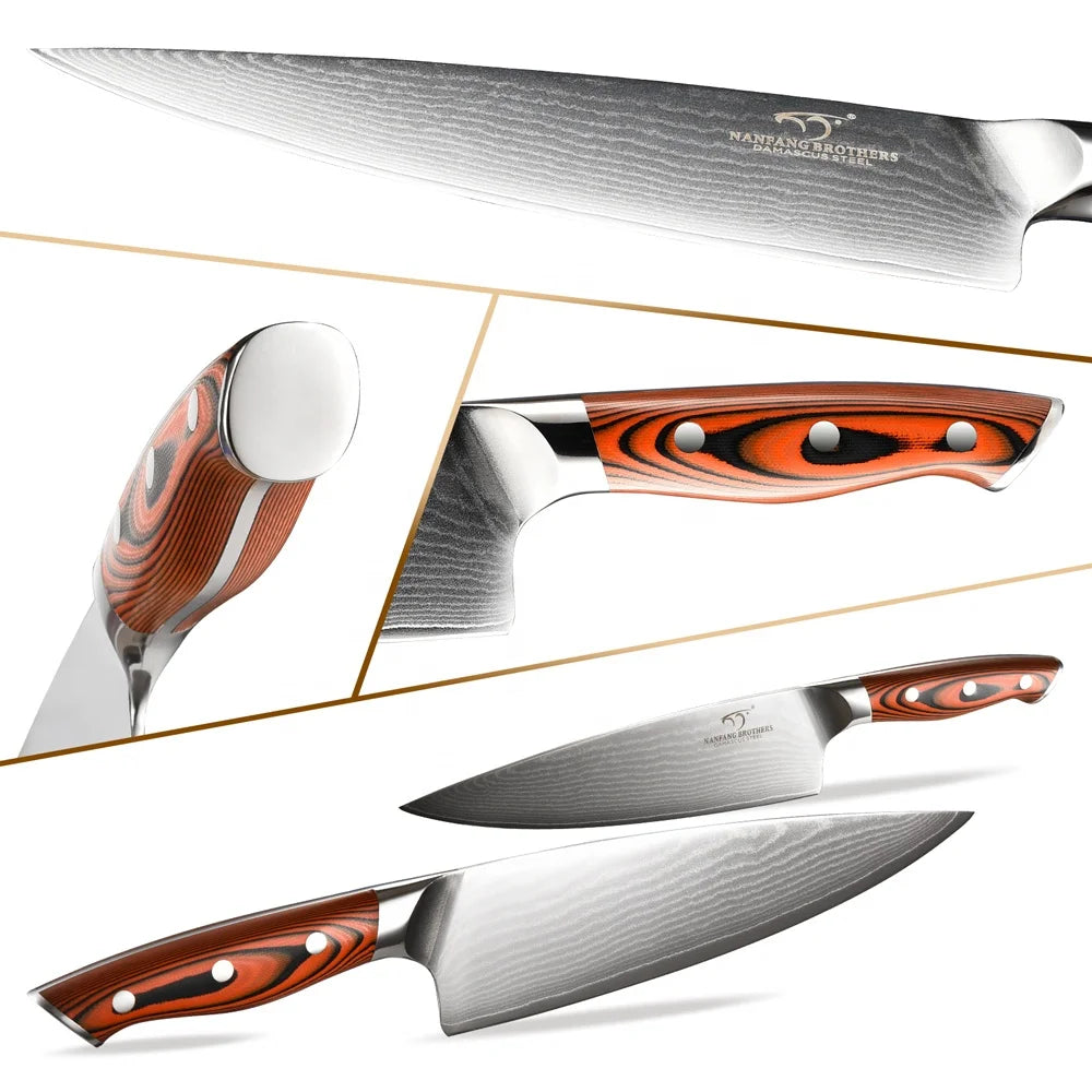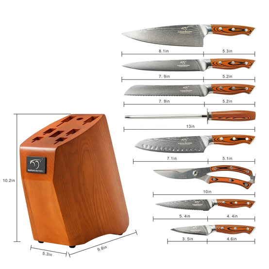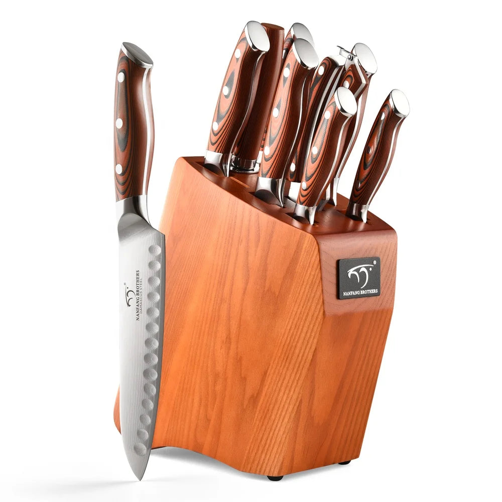 Fast Drop shipping 9 Pieces G10 Handle Damascus Wholesale Kitchen Chef Knife Sets with Wood Knife Block