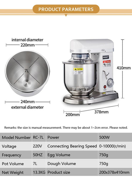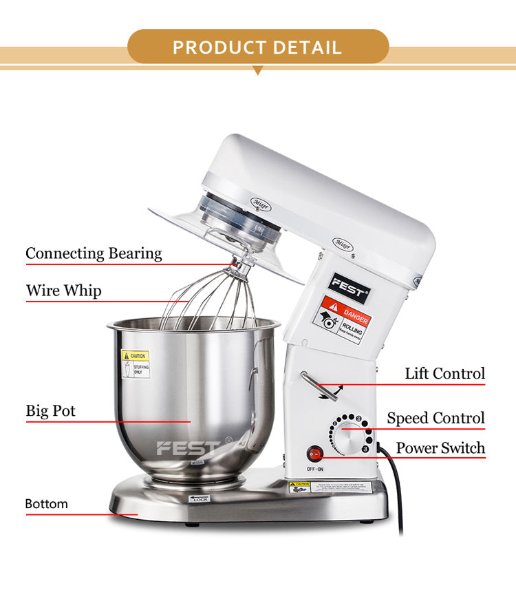 FEST 7.4 Quart Dough Mixer For Pizza Food Processing Machine Mixing Commercial Restaurant Kitchen Machine