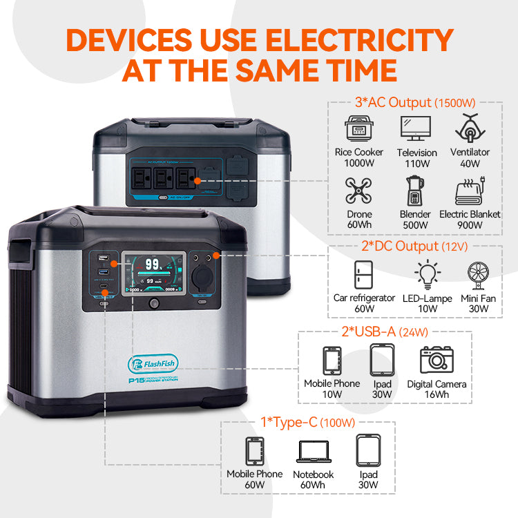FlashFish P15 EU US In Stock High Capacity 110v 220v 230v 280000mAh 1500w 2000w Portable Station Solar Power Bank With Panels