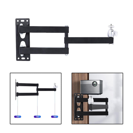 - Adjustable wall hanger: High quality material, with 360 degrees horizontal rotation projector mount head.