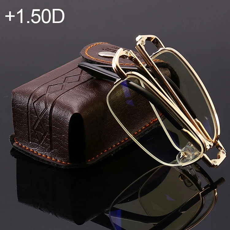Folding Anti Blue-ray Presbyopic Reading Glasses with Case & Cleaning Cloth +1.50D Unisex Reading Glasses