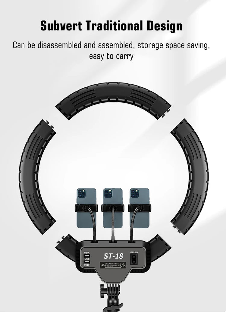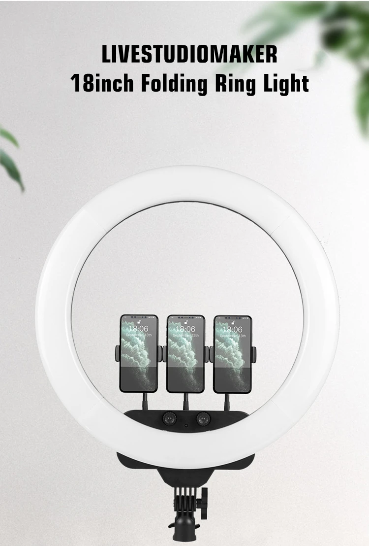Folding Tiktok Selfie Fill with Tripod Ring Light 18 Pouces Photographic Lighting Bi-Color with Remote Stand