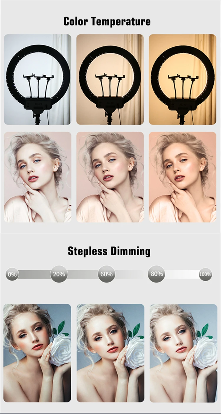 * 3 colors lighting mode: white, warm yellow, and warm white. Each lighting mode has 10 adjustable brightness, it can meet your different needs.