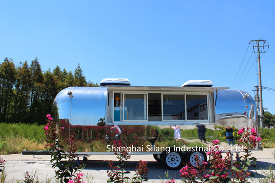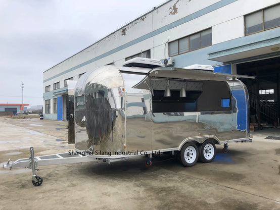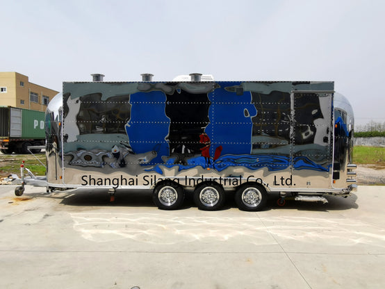 food truck with ice cream hamburger waffle crepe machine/ airstream 304 stainless steel mirror smart camper rv food trailer
