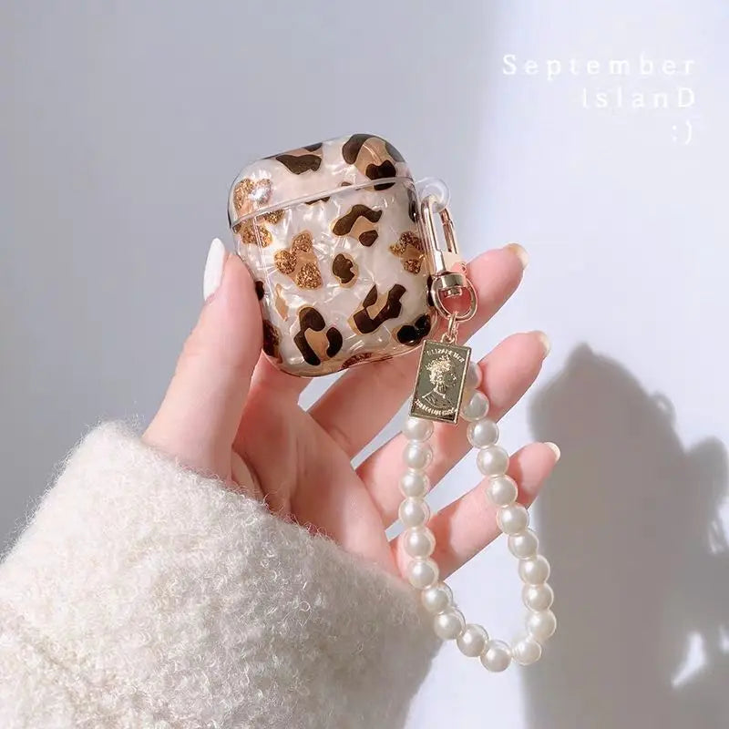 For AirPods Pro case Luxury Leopard Design For Airpods Case Cute With Pearl Chains