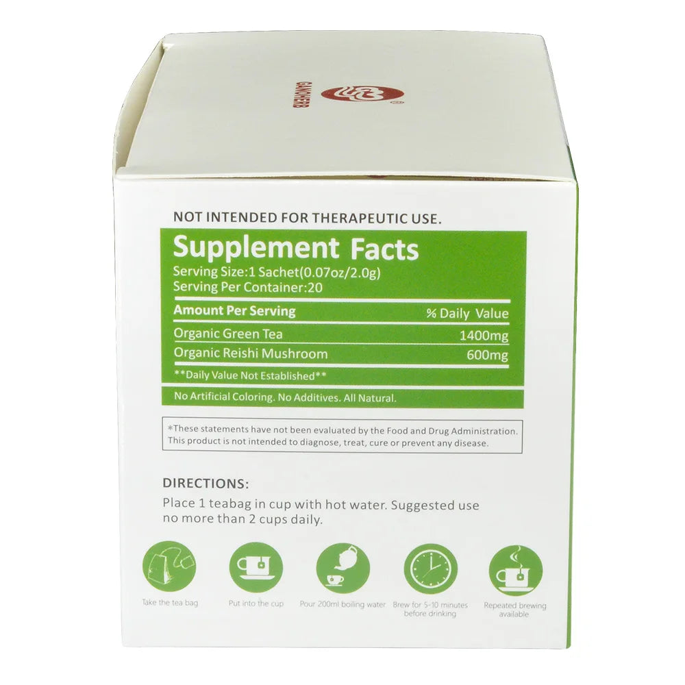 * ADDED WITH REISHI MUSHROOM - Organic Green Tea is added with the extract of organic Reishi Mushroom, a traditional Chinese medicine that is also known as the magic herb which has good benefit to health.