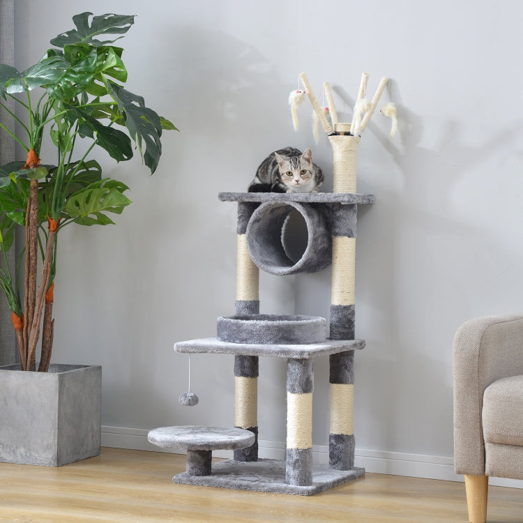 5. This interesting multi-layer cat tree with cat tube, resting platform and scratching post will bring your cats comfort and