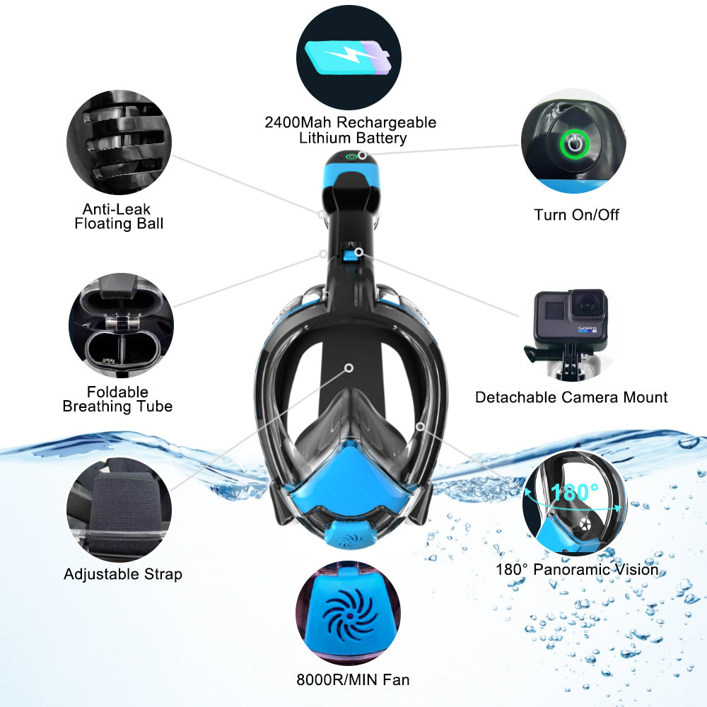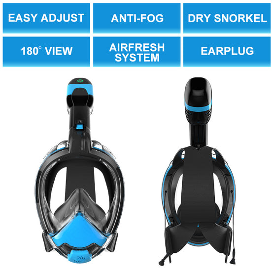 Full Face Snorkel CO2 Reducing System Anti-Leak anti-Fog Safety Breath Adults Diving Snorkeling equipment