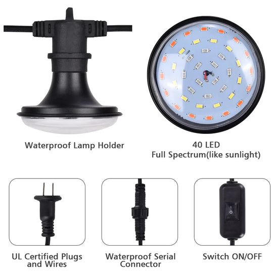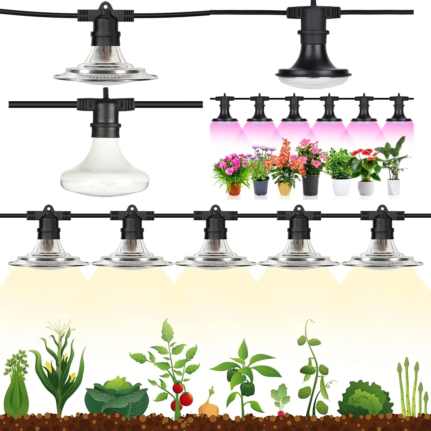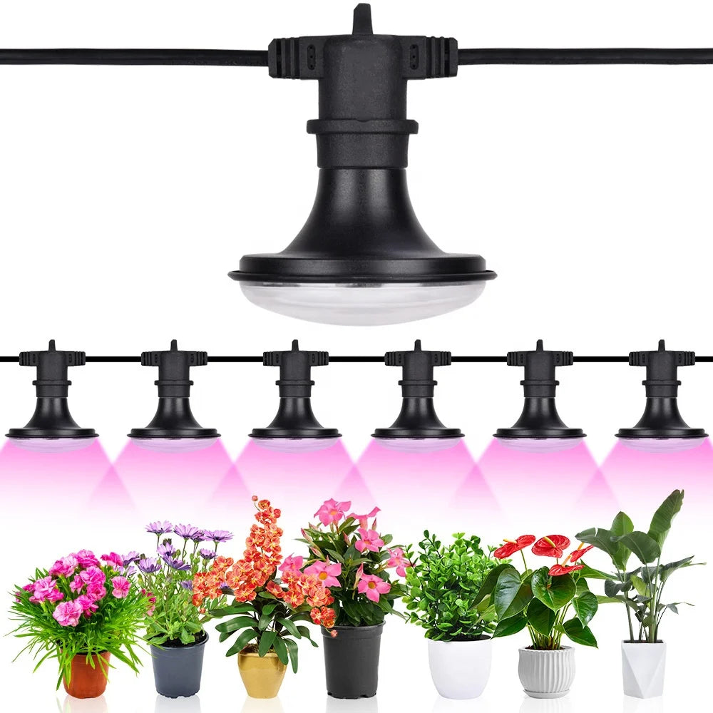 Full Spectrum LED Grow Light for Seedling Hydroponic E26/E27 bulb 15W Adjustable Length Farm Outdoor Waterproof Plant Growth Lamp String