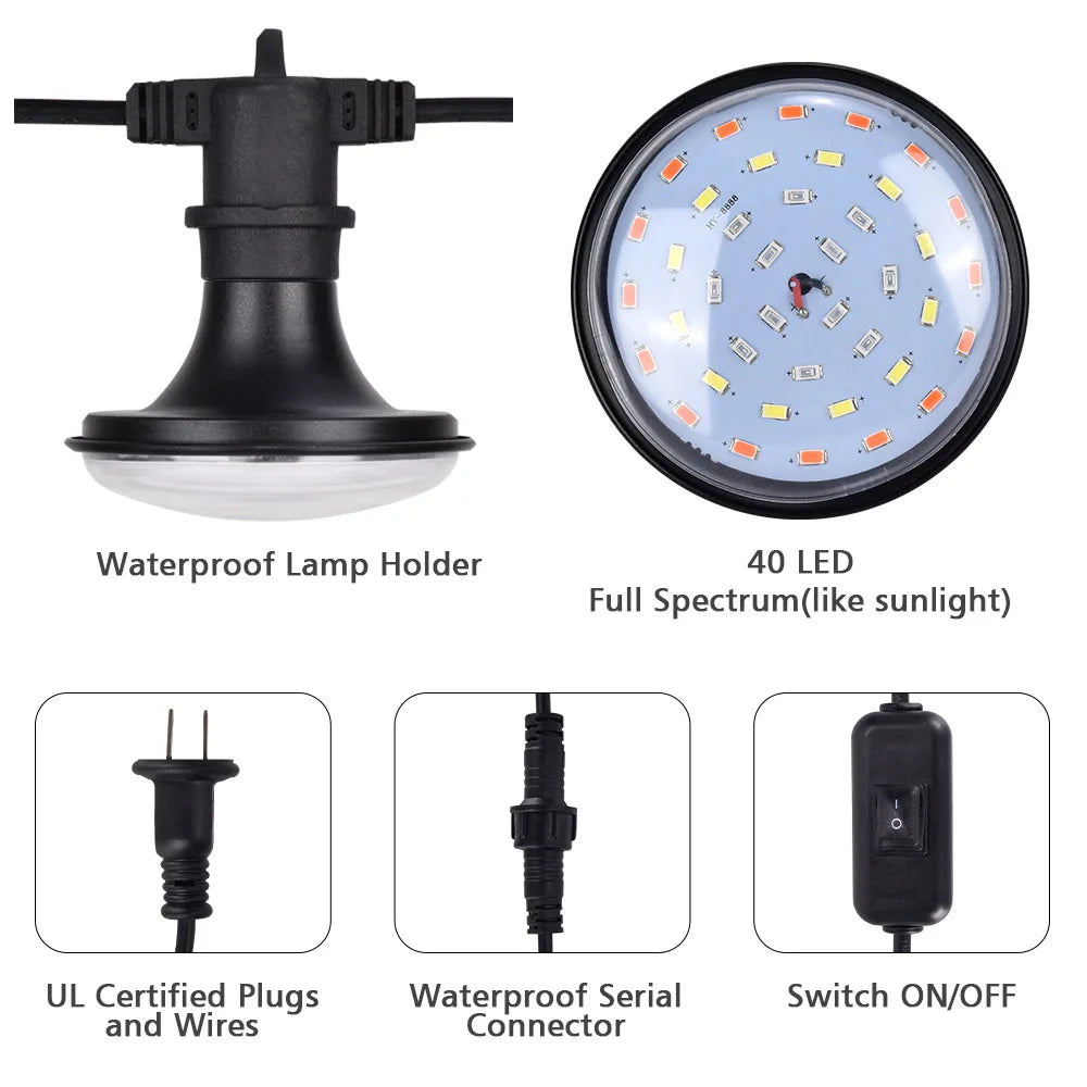 Full Spectrum LED Grow Light Seedling farm Hydroponic E26 bulb 15W Adjustable Length Outdoor Waterproof Plant Growth Lamp String