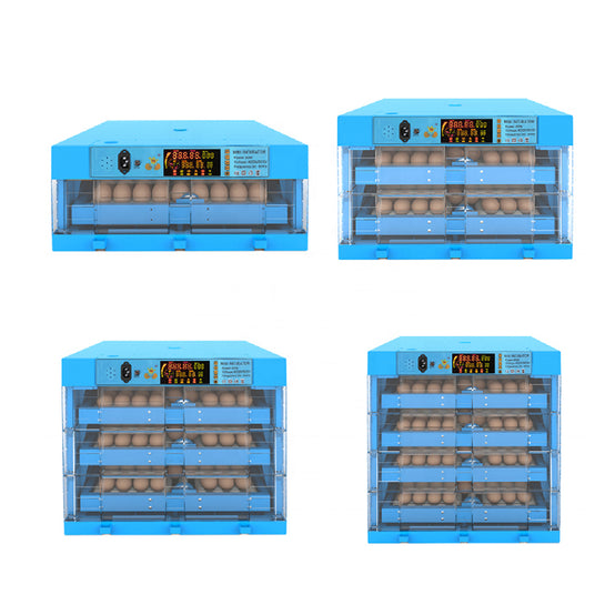 1. Colorful controller screen .Colorful screen.Easily visual.Accurate showing. 2. Multi-purpose egg tray.360 degrees roller egg tray 3. Importing temperature and humidity sensor.Reading temperature and humidity accurately. 4. All materials are used by environmental material. 5. Outside adding water.It can add water outside easily.No need to open the cover. 6. High hatching rate