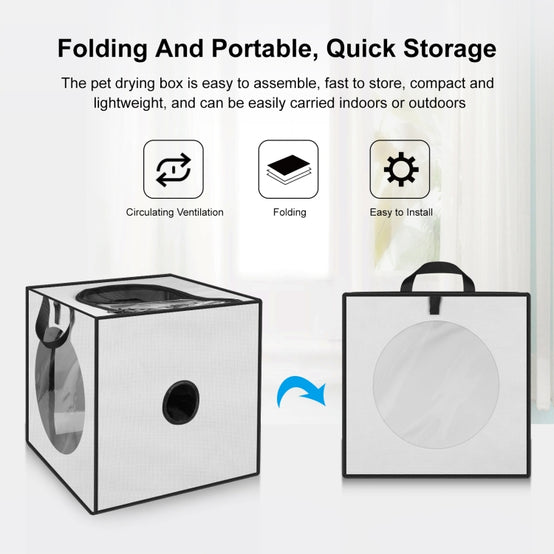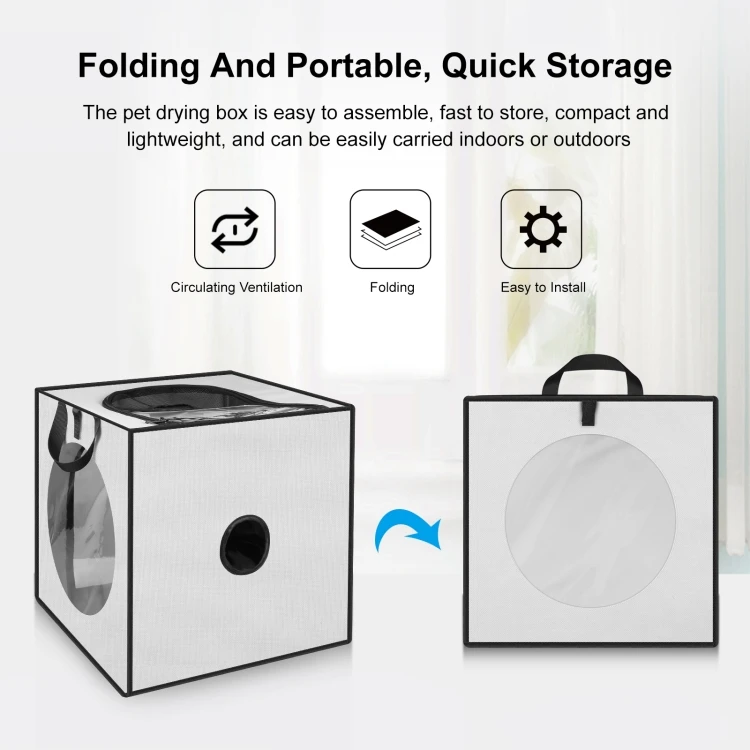 3. Foldable & Portable: Pet drying box is foldable and can be placed in a storage bag when not in use. Lightweight and sturdy, space-saving, convenient to store, easy to carry, it is an ideal choice for home use, outing and travel.