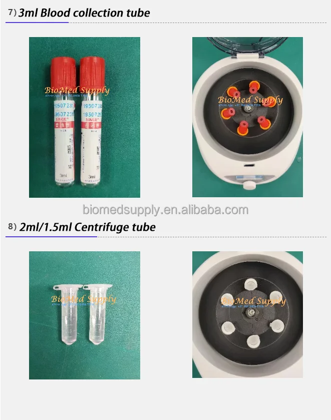 Biomed Supply low-speed centrifuge, supplied with built in fixed angle rotor A6-15P which can hold up to 15mL/10mL/7mL/5mL×6 tubes.