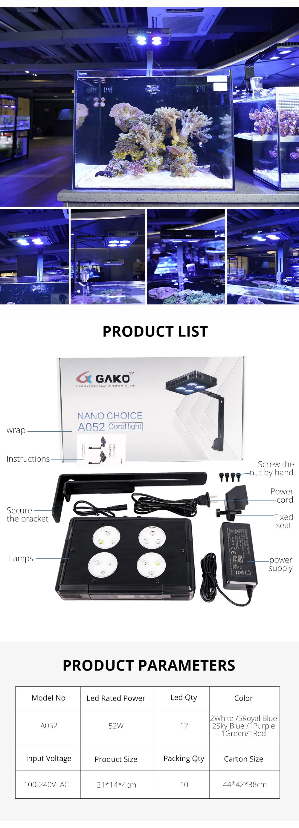Gako LED Marine Light Full Spectrum Marine Aquarium Light 52W Saltwater Marine Reef Lighting,aluminum 90 High Power LED 5 - 45