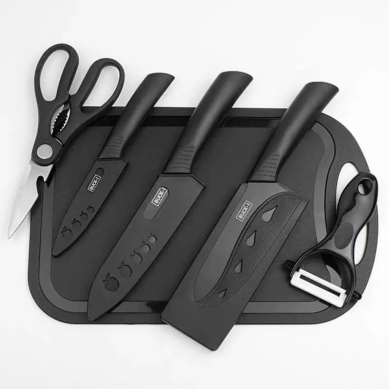 German Black Steel Vegetable Knives Set Household Cutter Kitchen Knife Cutting Board Combination Meat Cleaver Fruit Knife Set