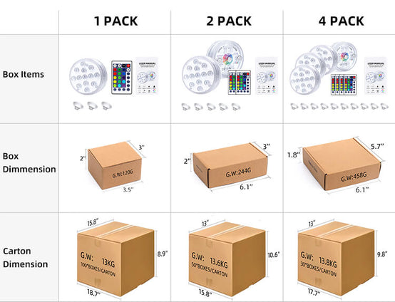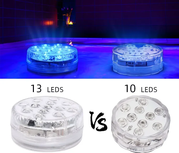 The submersible light comes with 13 high-brightness LEDs, more bright than the 10 LEDS.