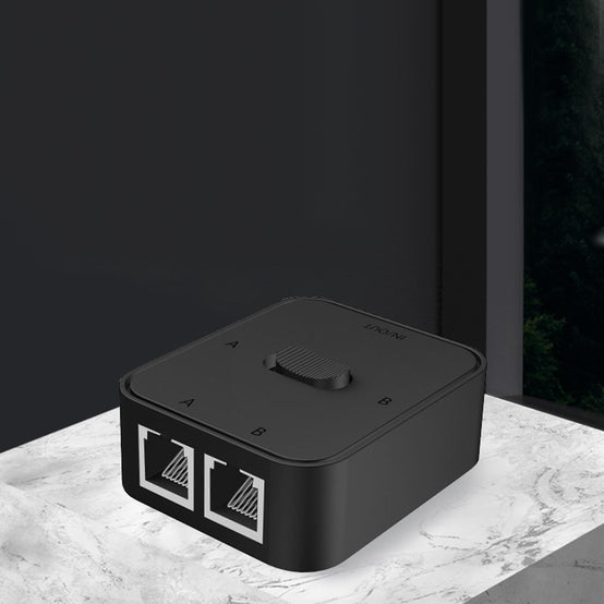 - With switching function and distribution function,Manual Network Switcher 2 In 1 Out/1 In 2 Out RJ45 Network Ethernet Switch.