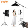 Package Listing: 3x Godox SK400 II 2x Godox 60cm x 90cm Soft Boxes 1x Godox BW120cm Soft Boxes 2x Godox 2.8m Light Stand 1x Godox X2T Trigger 1x Godox Studio Boom Arm 3x Standard reflector