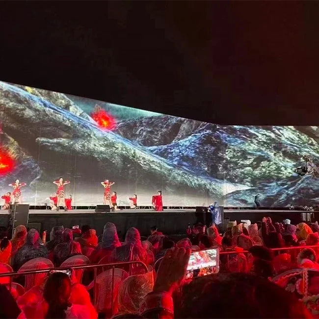 The audience can see through the screen and see the objects behind the screen,which is more transparent than the traditional projection screen. Holographic mesh Screen projection can shorten the distance between the audience and performers, enhance the interaction between the performers and the audience, integrate the multimedia images of the whole stage into the performance, and make the performance more perfect .
