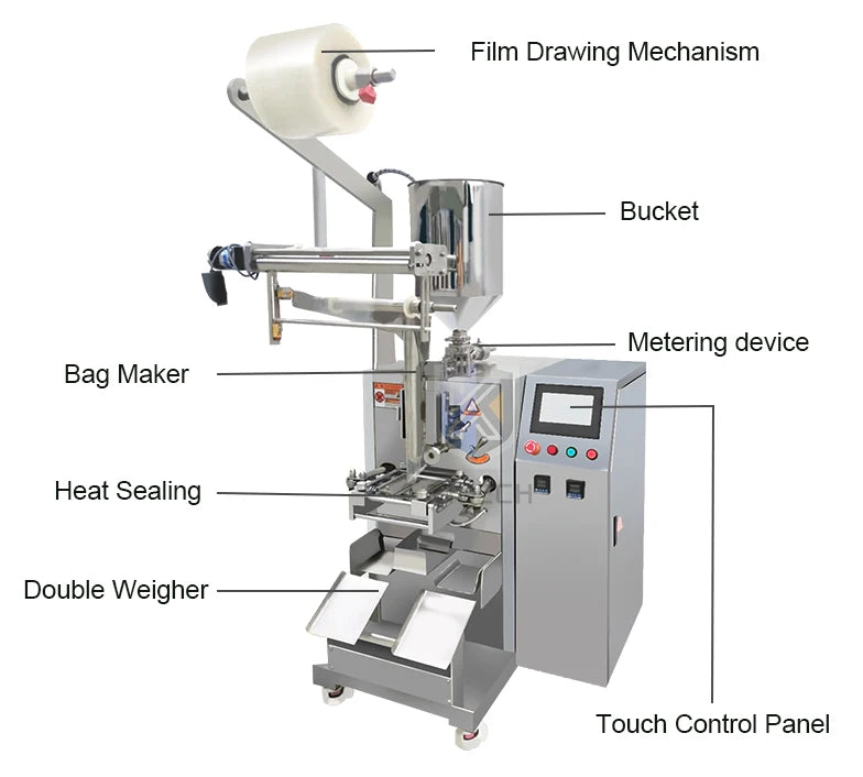 4、pump measurement adjusting device can adjust packaging capacity during running the machine, reduce the lost of material and improve productivity.