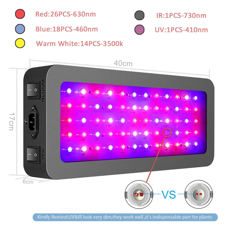 [VEG / BLOOM SWITCHES] Double switches provide 3 light modes according to the plant in different stages, the VEG switch for seeding growth, BLOOM switch for the plant in the flowering and fruiting stages; we recommend both switches be turned on in the stage of flowering and fruiting for the best results.