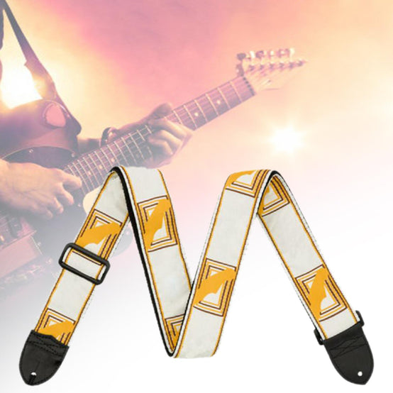 Guitar Strap Thickening Embroidered widening Polyester for Bass Acoustic White Yellow