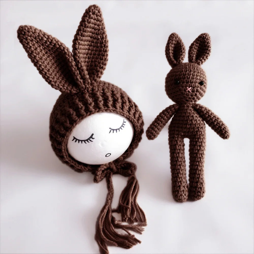 Newborn Gift Cute Animals Rabbit Baby hats and doll sets newborn photo props knit Baby Crochet Photography.