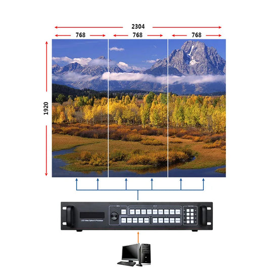 HD Processing 4K Led Video Display Processor AMS-SC359 1*3 Video Wall Controller Support 11520*640 For SMD LED Screen