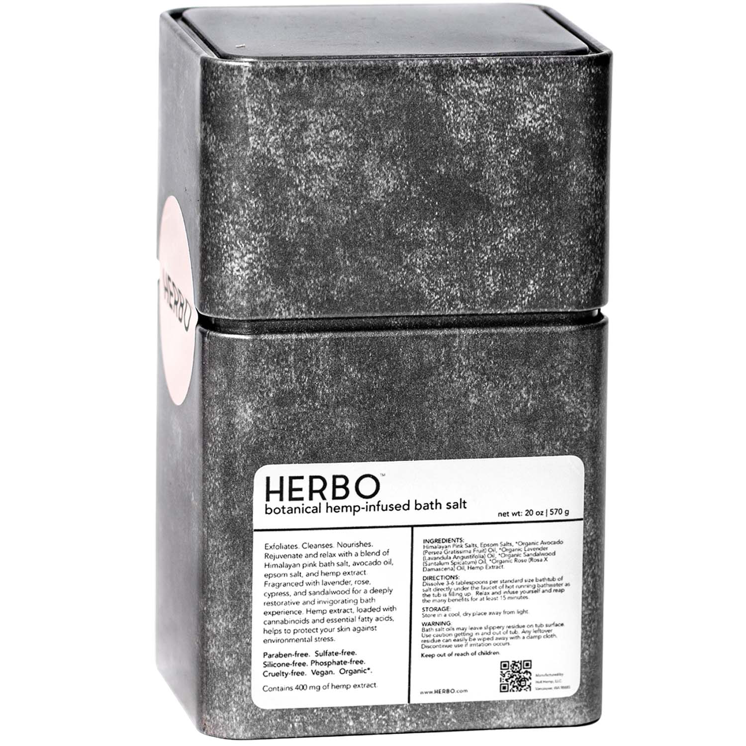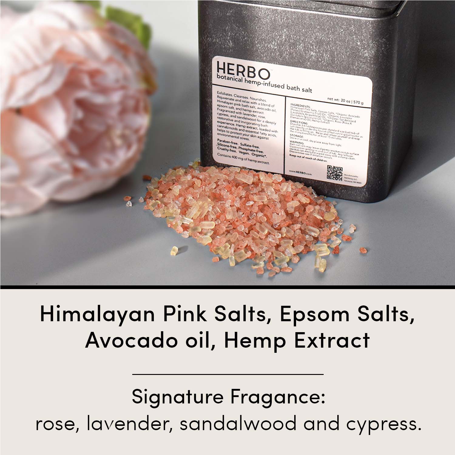 Herbo Hemp Bath Salts - Restorative and Invigorating Bath Experience, with Epsom Salt, Himalayan Pink Salt, 20oz