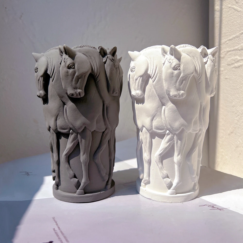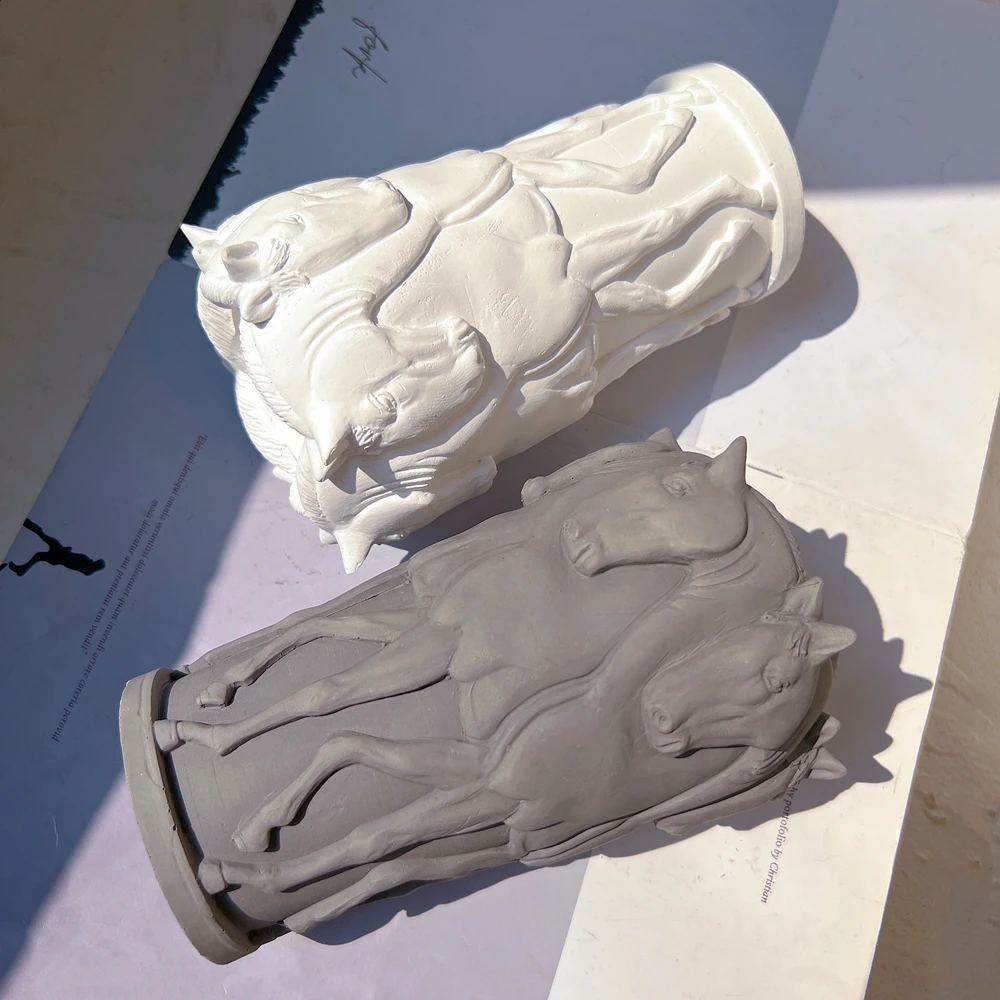 Herd Horse Statue Silicone Mold Riding Sculpture Cement Concrete Resin Mould Figurine Animal Poney Plaster Mold For Candle Jar