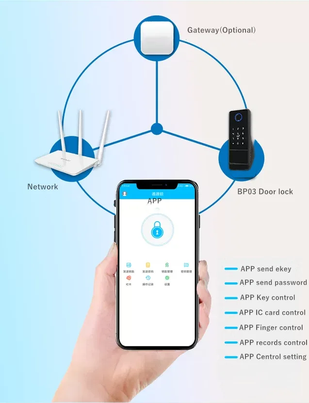 1. Unlock 4 ways: Mobile app (BT unlock and send ekeys), fingerprint, card, password, key.