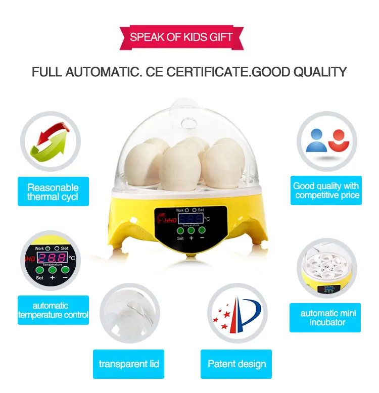 HHD brand Intelligent automatic small 7 eggs incubator for parrots sale