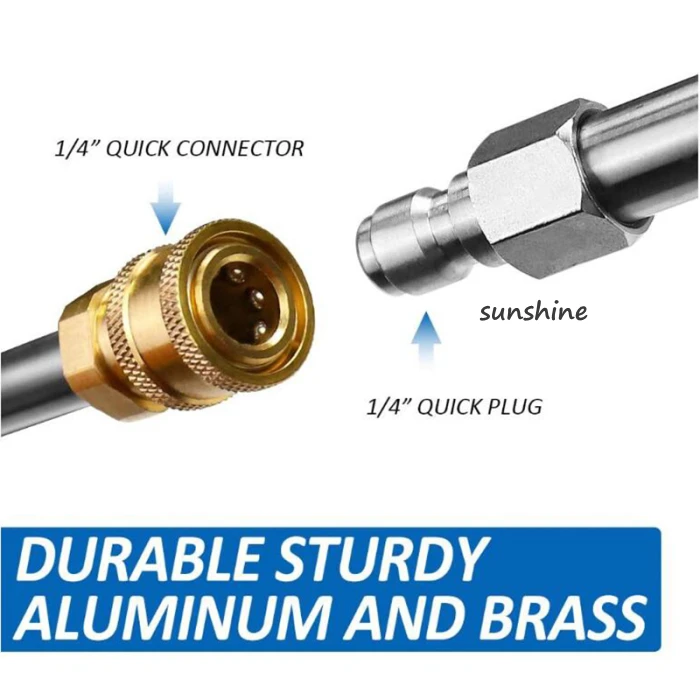 1/4 inch male plug for quick disconnect. Easy to connect and release. Connect under car washer to pressure washer wand. In order to handle wand easily, can connect it to pivoting coupler, then connect pivoting coupler to wand.