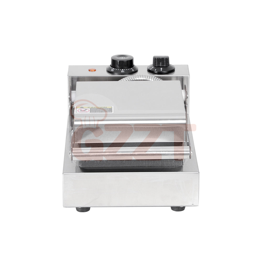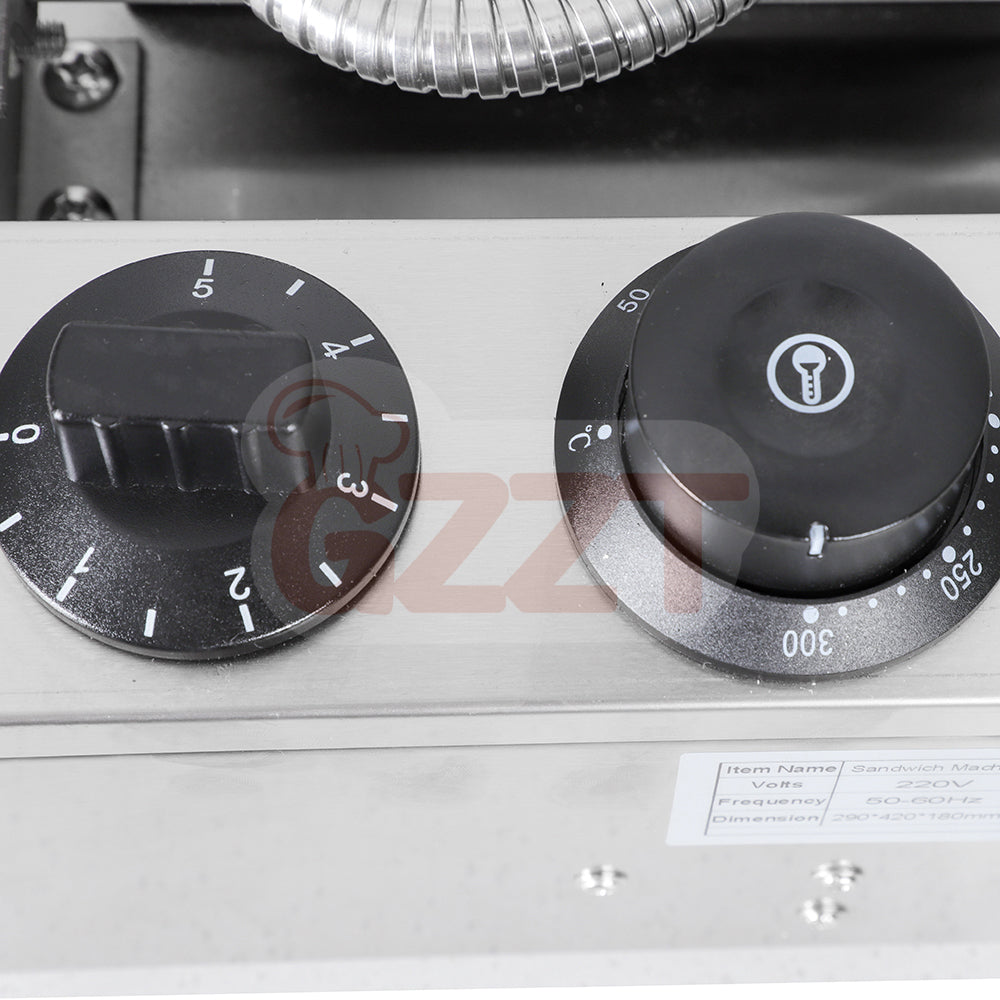 Product Name:Sandwich Machine Model:IT-SSM Voltage: 220V/50Hz-110V/60Hz Power:0.9KW Temperature range(℃):50-300 Sandwich size:10*10cm Product size:220*430*180mm Packaging size:470*230*210MM N.W./G.W.:6KG/8KG Advantage: Non stick surface.Temperature range: 50-300 degree. Energy-saving, thermostat control & timer control. Stainless steel body, with high conductivity, quick heating, more energy-efficient. Good Flavor foods can be made. In the condition of high pressure and temperature, foods can be fried more evenly and sufficiently. The upper and lower module plates are enameled and are easy to be cleaned. Independent temperature controlling system are convenient to handle and can achieve energy economy as well. Internal temperature protector is reliable and safe.
