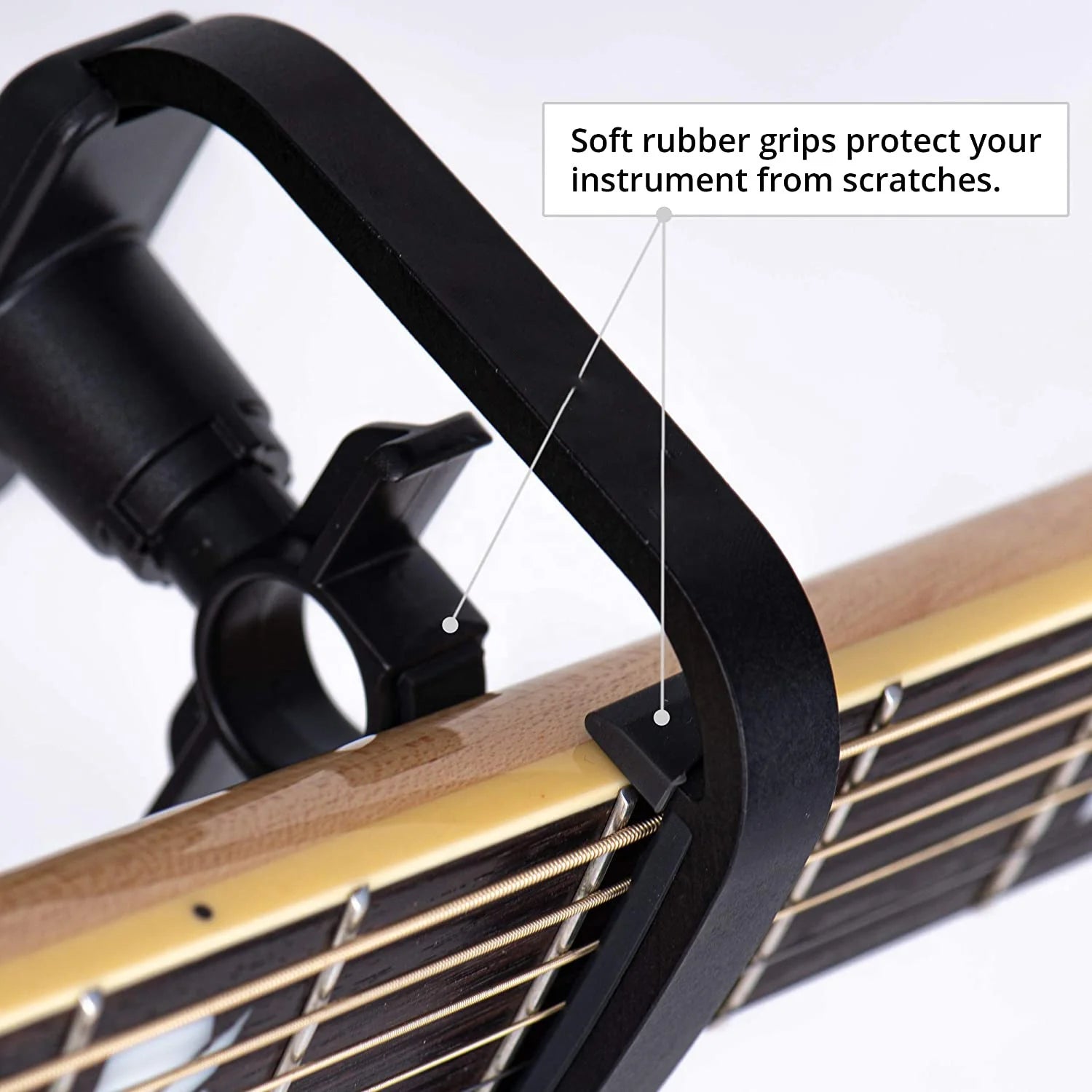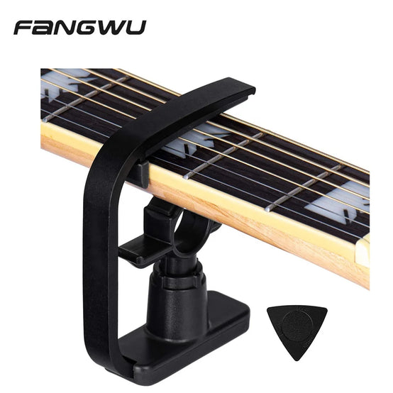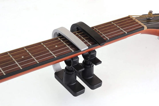 - [INNOVATIVE CREATIVE 3-IN-1 GUITAR PICKS AND CAPO ] The Guitar Capo is designed to be operated with 3 fingers for simplicity, easy maneuvering, quick change for the best capo performance, clamps perfectly and vertically on the fretboard of any stringed instruments.