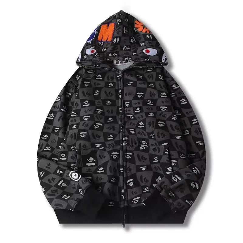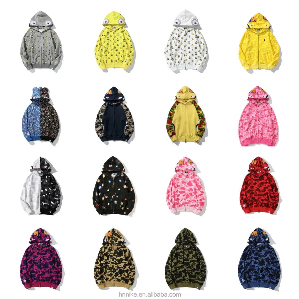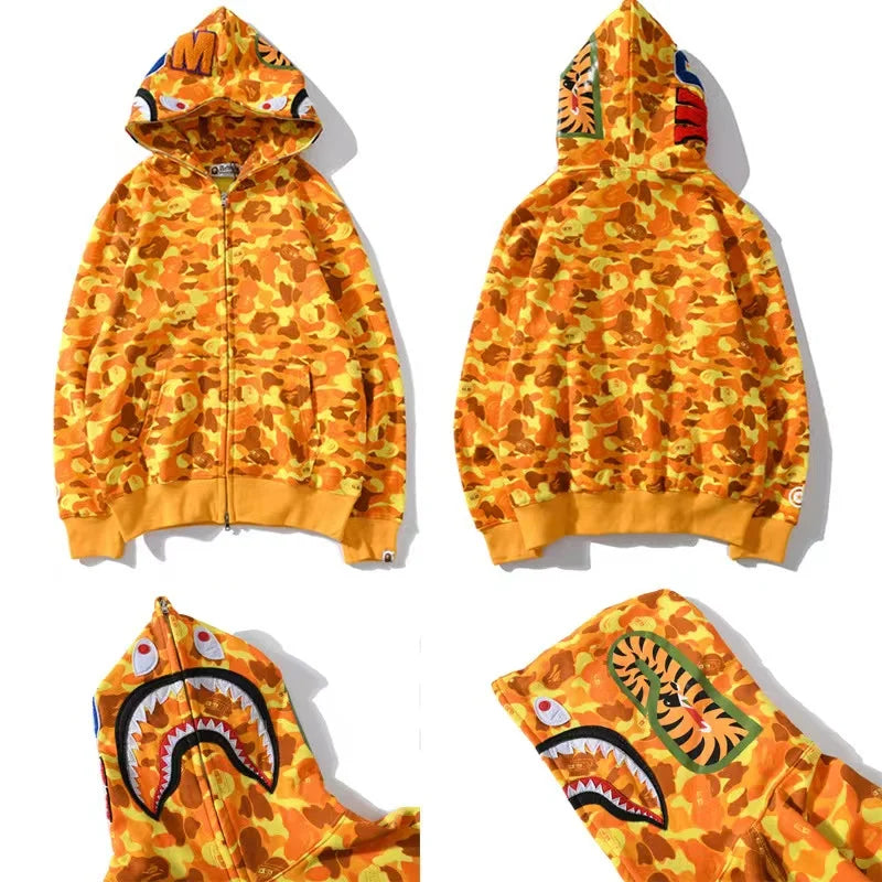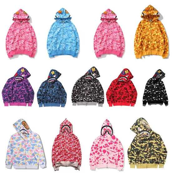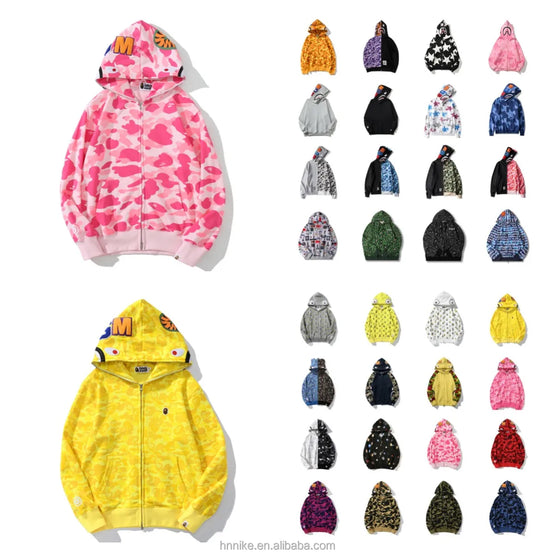 High quality Bapes Shark hoodies set Fashion Tie dye Cotton Warm Camouflage Oversized Wholesale Sweatshirt With Zipper hoodies