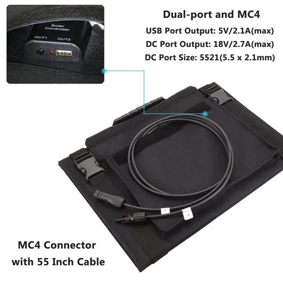 This product is a solar charger that is foldable for easy carrying and storage, It is the best choice for outdoor adventure, hiking,camping, backpacking, etc. .Our Solar panel is mainly designed for charging 12V batteries, applicable for RV, boat, yachts, car, trucks, trailers, etc. And the included USB port and DC port add some convenience, you can use it directly to charge your mobile device when needed.
