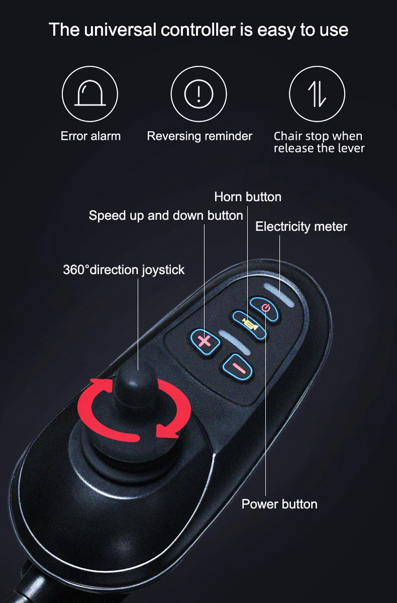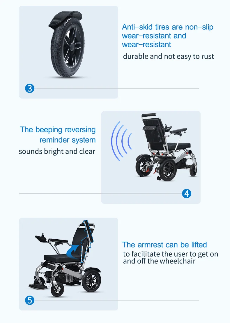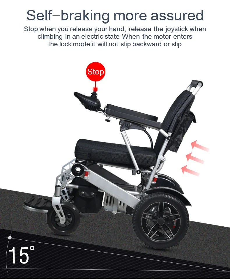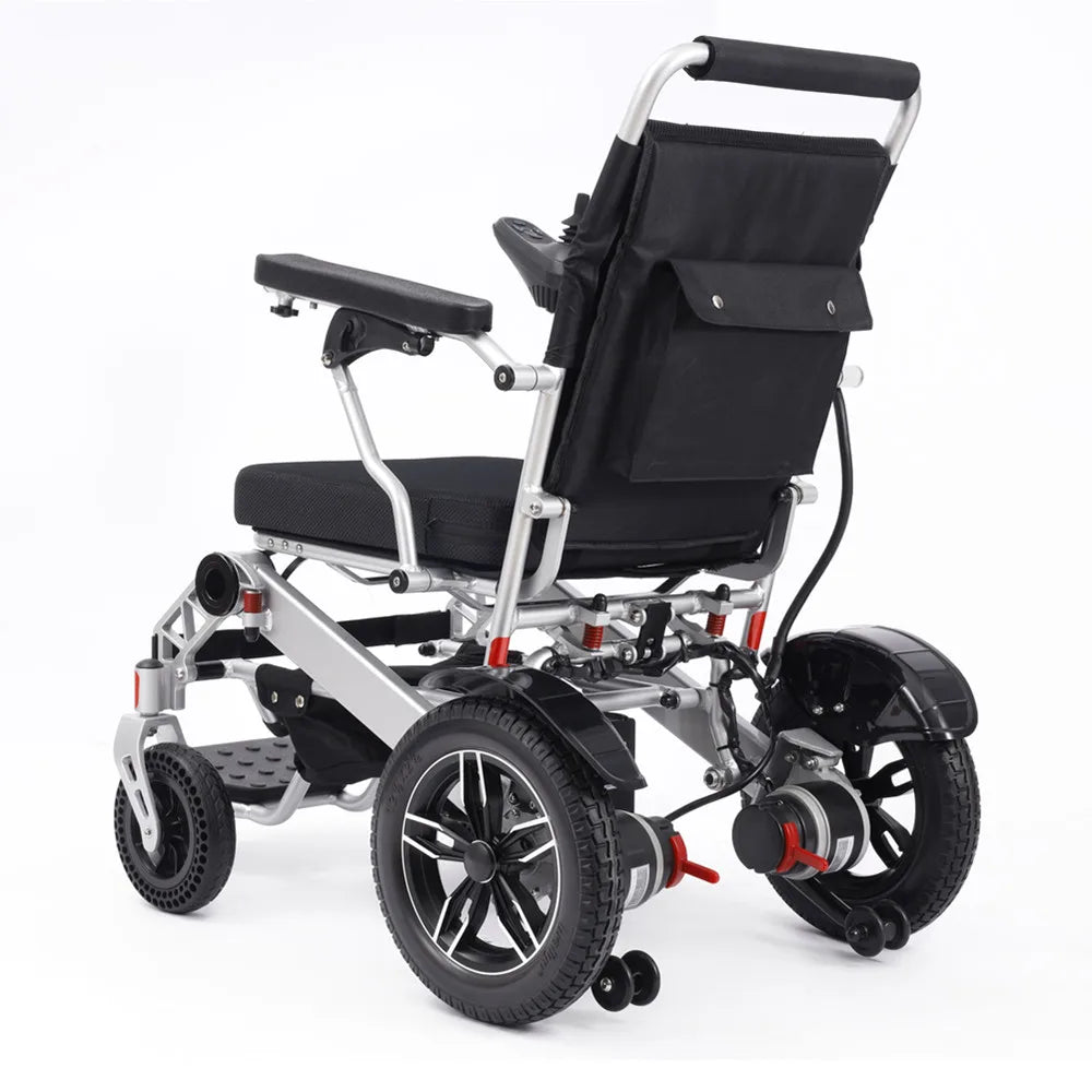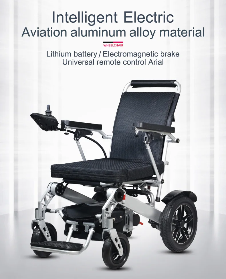 High quality intelligent remote control electric wheelchair with large wheels for stable movement and travel with pillows