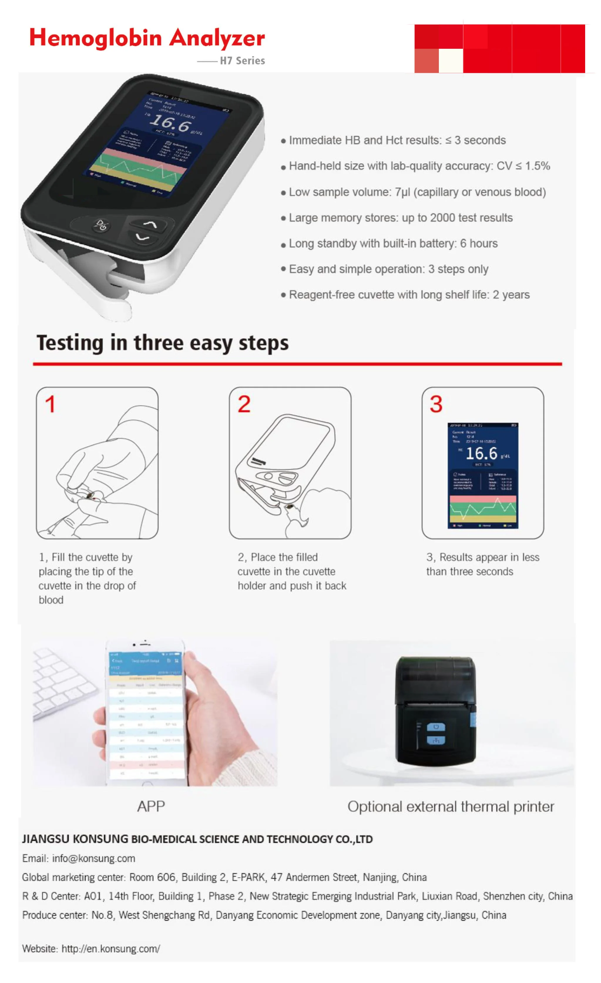 ◆Immediate HB and Hct results: ≤3 seconds