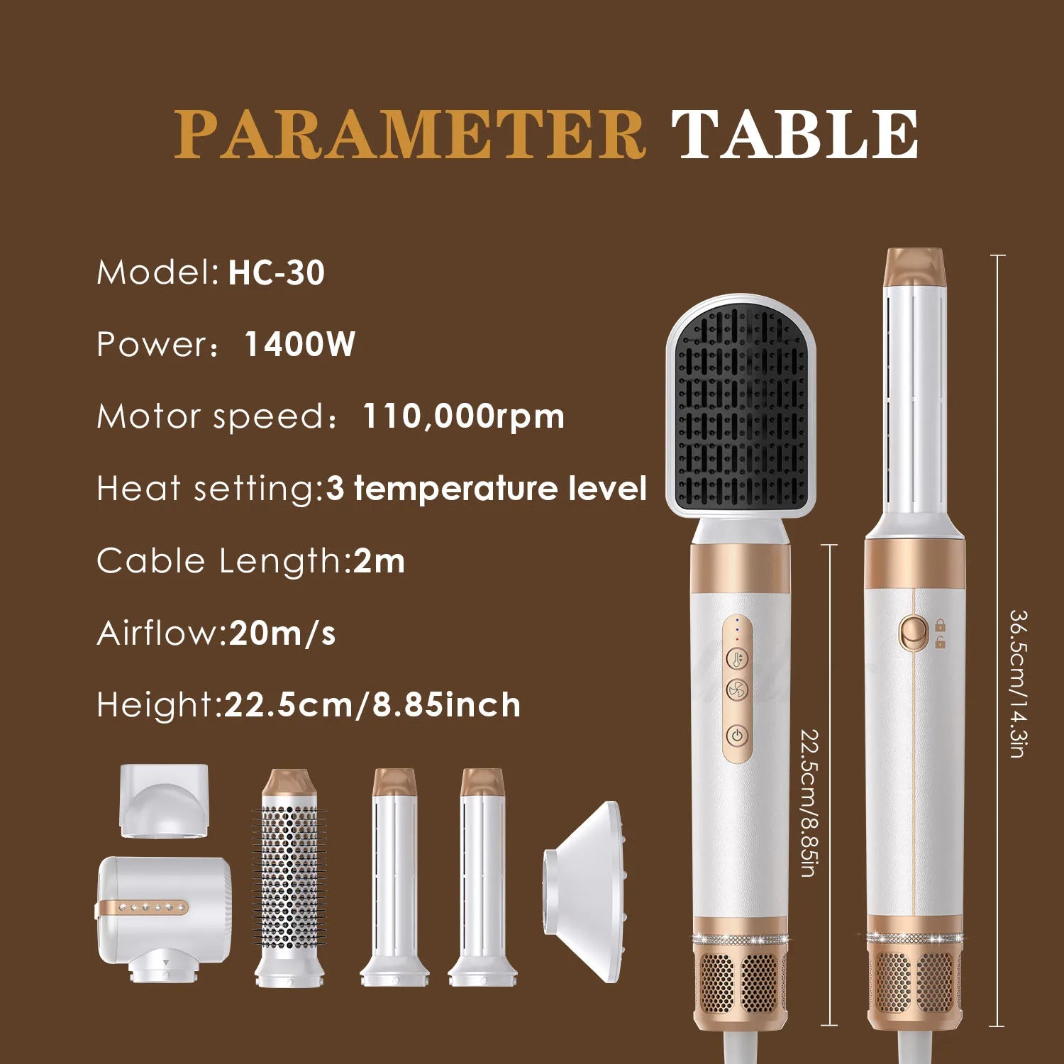 Interchangeable high-speed BLDC hair dryer brush 7 in 1 set